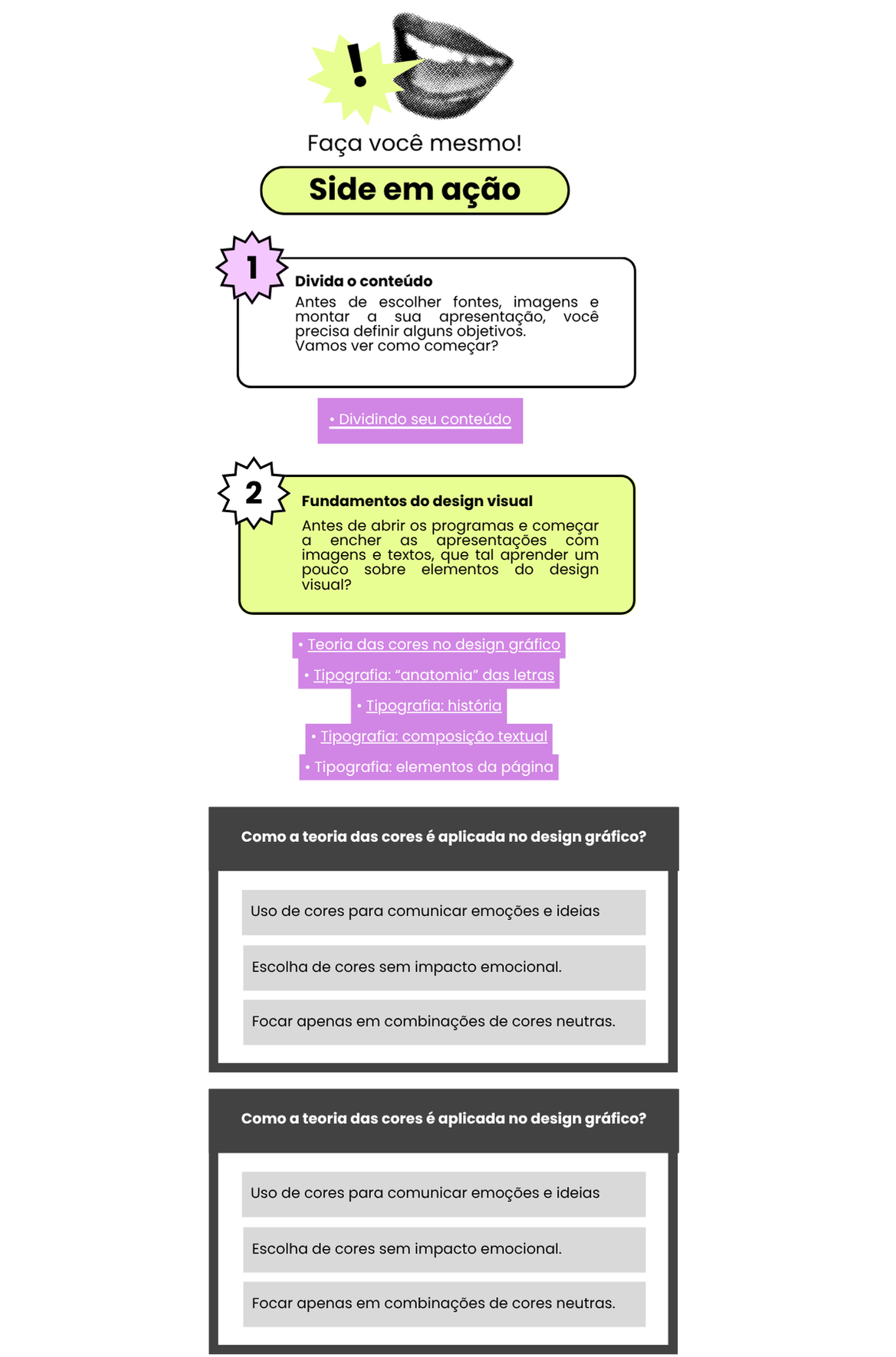 Dividindo seu conteúdo2Fundamentos do design visualAntes de abrir os programas e começar a encher as apresentações com imagens e textos, que tal aprender um pouco sobre elementos do design visual?